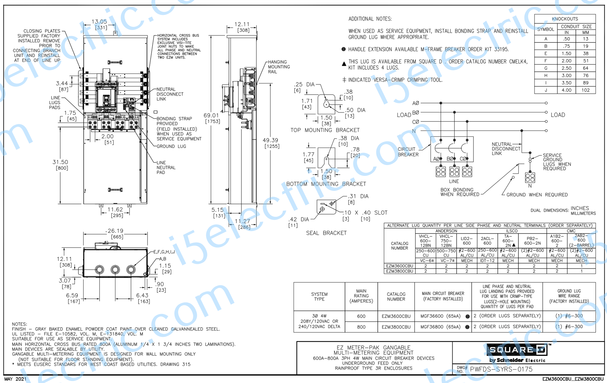 SQUARE D SCHNEIDER EZM3800CBU 800 AMP 3 PHASE EZM METER MAIN CIRCUIT BREAKER EUSERC